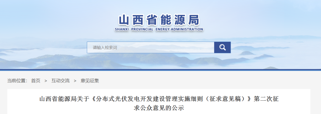 山西省能源局关于《分布式光伏发电开发建设管理实施细则(征求意见稿)》第二次征求公众意见的公示